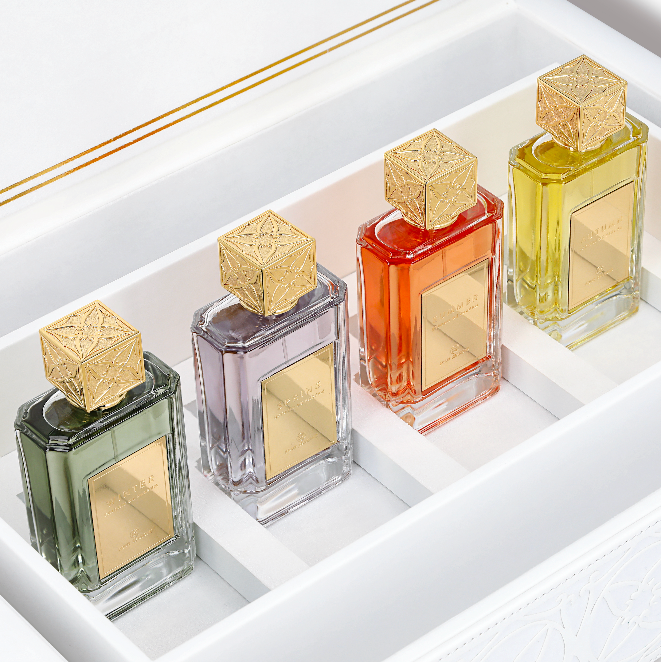 FOUR SEASONS, which represents sophistication and seduction. Four new perfumes bloom gracefully each year with dedication to creativity. Each fragrance is carefully crafted with seasonally specific ingredients. An extraordinary scent journey awaits unforgettable moments for those who are looking for a special seal